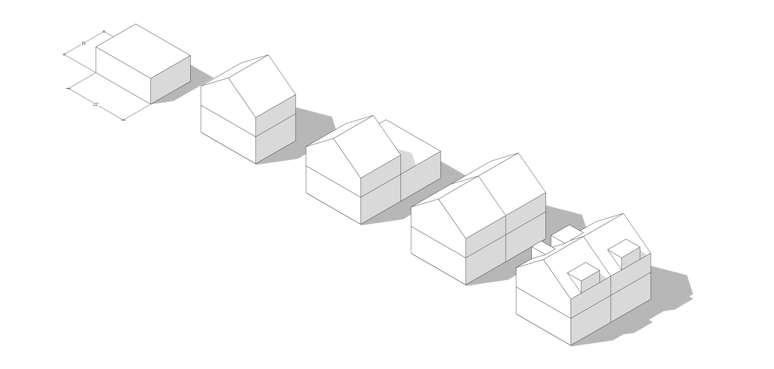 No one wants a cookie-cutter neighborhood, homes are an expression of personal taste and diversity contributes to more vibrant urban environments. Because of our modular design approach, each model can be reconfigured into a more custom plan to add variations to each base model.